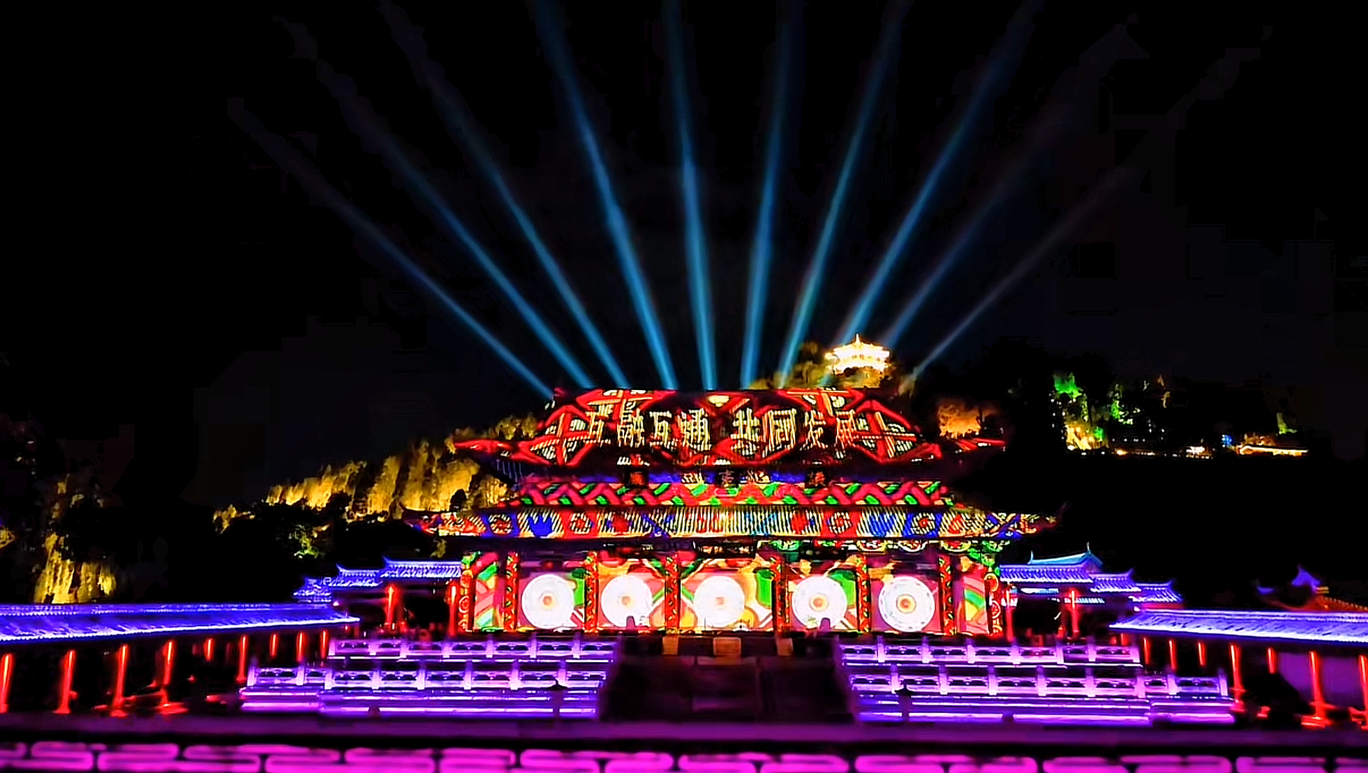 《遇見木府》該項目采用了NEC女王系列和英雄系列工程投影機實現(xiàn)古建筑投影,依托木府景觀,通過結合景點地形環(huán)境、人文特色、微劇場互動演繹和聲、光、樂、影等技術手段,豐富了古城旅游的夜景文化內(nèi)涵,為游客提供新穎獨特的夜游體驗,增加了夜游的趣味性和沉浸式體驗感,使古城在傳統(tǒng)與現(xiàn)代的碰撞交融中迸發(fā)出新魅力,讓文化煥發(fā)新生。