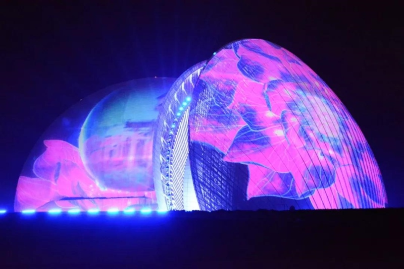 珠生于貝,貝生于海。珠海僅用40年,從小漁村發(fā)展成現(xiàn)代化大都市。新時代的新名片在夜幕之下,數(shù)十臺NEC 4萬流明4K雙色激光工程投影機,將城市的時代變遷躍然于大劇院建筑之上。在現(xiàn)場絢爛燈光協(xié)調(diào)配合下,一大一小的珠海大劇院建筑墻體,宛如兩顆微微張合的貝殼,將珠海大劇院變成了香爐灣上最美的明珠。
